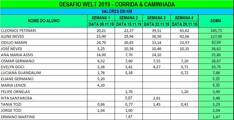 RESULTADO FINAL - CAMPEONATO CORRIDA E CAMINHADA 2019
