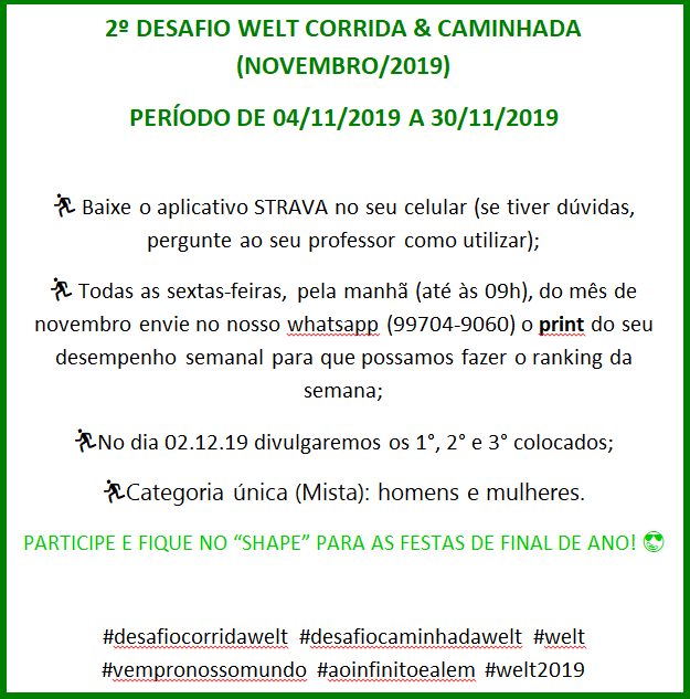 2º DESAFIO WELT CORRIDA E CAMINHADA 2019